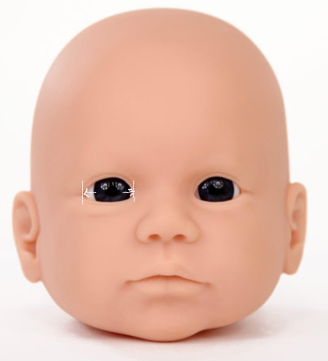 Um genau die Augengröße für die Puppe zu bestimmen, mißt man von einem Augenwinkel zum anderen (s. Foto) und gibt 1 mm hinzu. Damit ist schon die genaue Größe bestimmt.